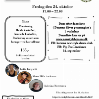 En aften med dans og lækker mad. Vi danser begynder danse så alle kan være med. Lotte Irmgarth krydder det hele med en workshop.